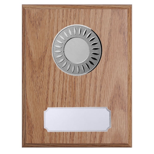 Træplakette lys - Klassisk og elegant træplakette med sølv skilte. I cirklen kan du vælge at få monteret et af vore mange standardmotiver eller eventuelt eget logo tryk. Under cirklen monteres skiltet med den ønskede tekst. Plaketten har udfræsninger på bagsiden, så den er nem at hænge op eller stille.