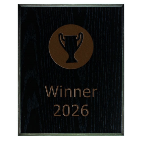 Denne elegante træplakette er det perfekte valg, når præstationer skal hædres med stil. Plaketten er fremstillet i flot sort træ, som giver et eksklusivt og tidløst udtryk, der passer til enhver begivenhed.